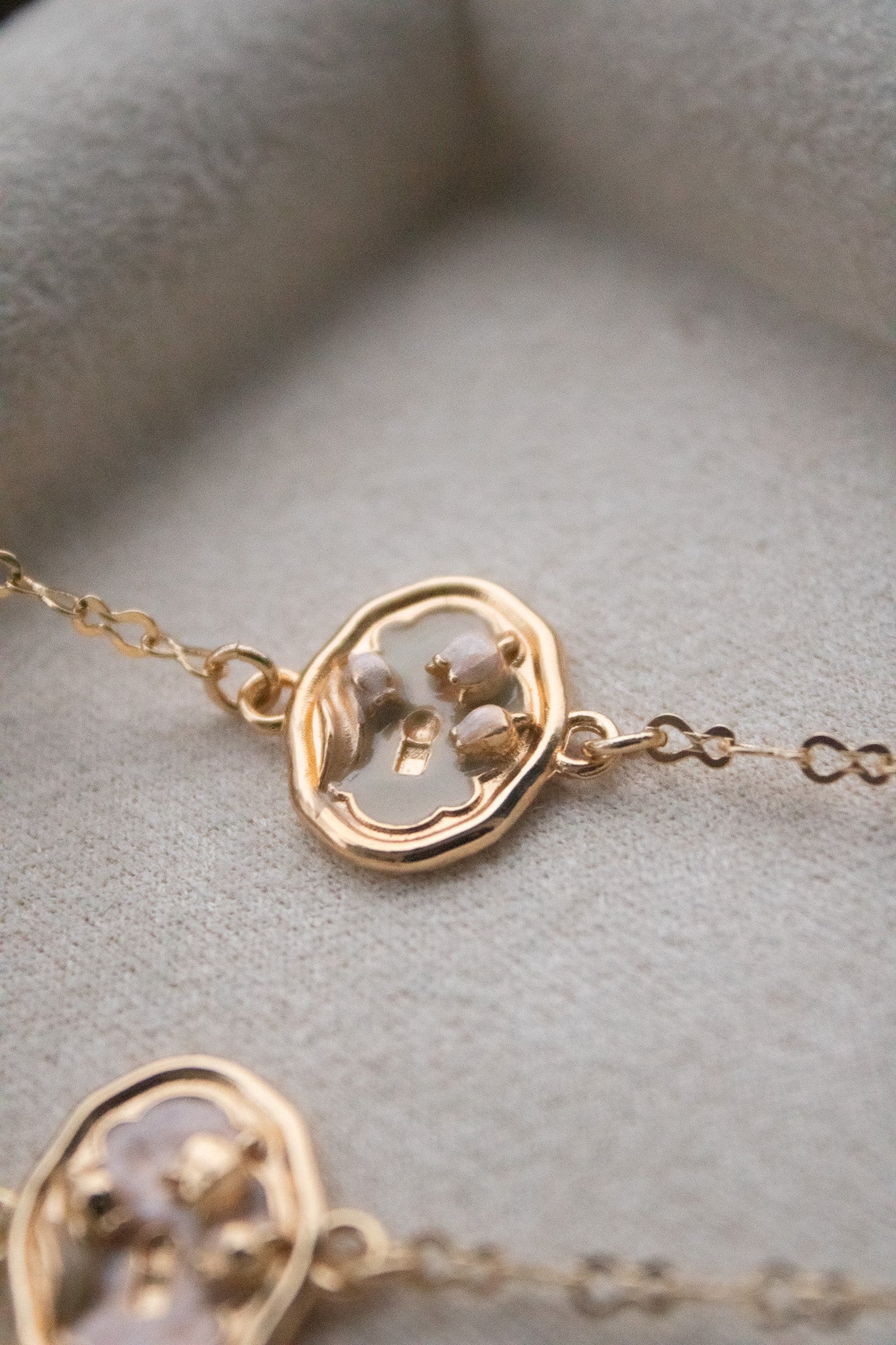 Ed è così che nasce l'idea della chiave e del chiavistello del nostro giardino interiore, impersonati dal fiore che rappresenta la felicità che ritorna, la purezza e la rinascita: il mughetto.